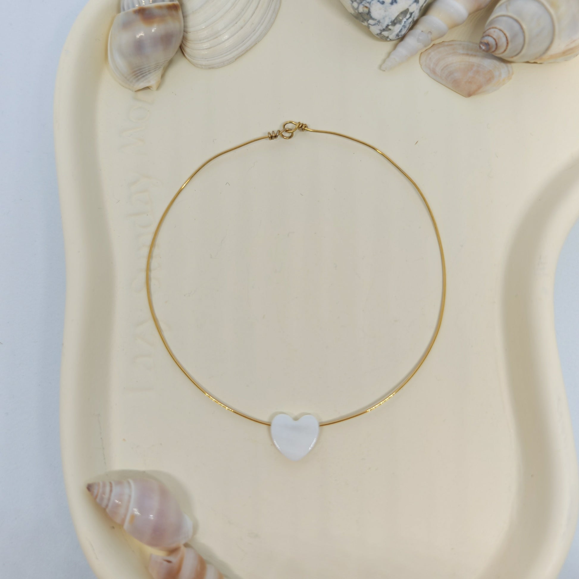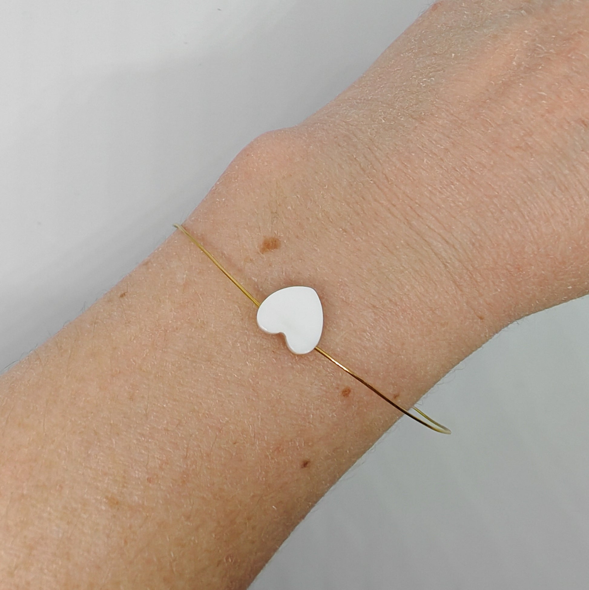 - Bracelet jonc doré destroy extra fin avec une perle en nacre.